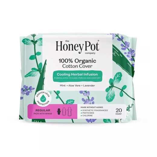 Experience unparalleled comfort during your period with The Honey Pot Organic Cotton Cover Regular Pads with Wings. Made from OCS certified organic cotton, these pads provide a soft, soothing touch against your skin. Infused with the calming properties of lavender, rose, aloe vera, and mint, these pads not only protect but also refresh with every use. You can buy these eco-friendly pads online and make a thoughtful choice that benefits both you and the planet. Say goodbye to irritation and discomfort, and hello to a new era of period care.