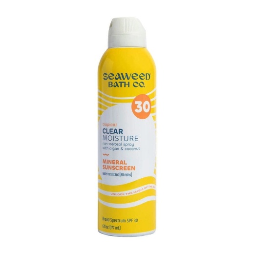 Introducing Seaweed Bath Co. Tropical Clear Moisture Mineral Sunscreen Spray SPF 30, the ultimate companion for your sun-soaked days. This mineral sunscreen spray is designed to offer reliable protection against harmful UV rays while keeping your skin hydrated and refreshed. With its lightweight, clear formula, you can enjoy seamless application without any greasy residue. The tropical scent evokes a sense of paradise, transporting you to your favorite beach while shielding your skin from sun damage.