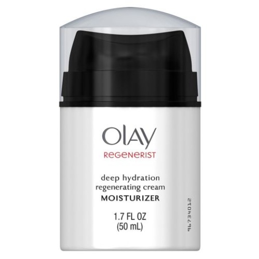 - Its hydrating formula keeps your skin moisturized all day and immediately softens the look of fine lines and wrinkles. The cream’s Amino-Peptide Complex delivers moisturizing ingredients 10 layers deep into the surface of the skin. Plus, its exfoliating properties aid in surface cell turnover and help regenerate surface skin cells. Its formula is non-greasy and absorbs quickly into skin’s surface. Get a hydrating formula that works the day shift with you and try Olay Regenerist Regenerating Deep Hydration Cream.Long-lasting daytime hydration with a non-greasy feel.Anti-aging moisturizer reduces appearance of fine lines and wrinkles.Amino-Peptide Complex delivers moisturizing ingredients 10 layers deep.Exfoliates to aid surface cell turnover