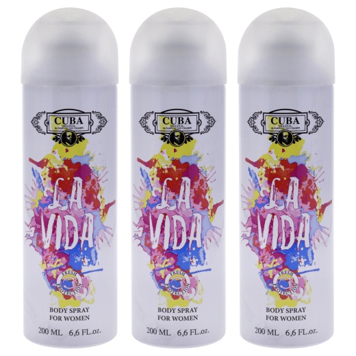 La Vida By Cuba For Women - 6.6 Oz Body Spray - Pack Of 3