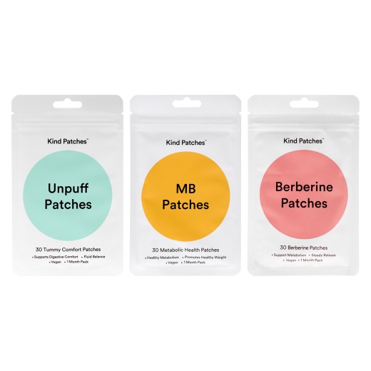 Metabolic Trio Bundle Kit By Kind Patches For Unisex - 3 Pc Kit 30 Count Berberine Patches, 30 Count Unpuff Patches, 30 Count Metabolic Balance Patches